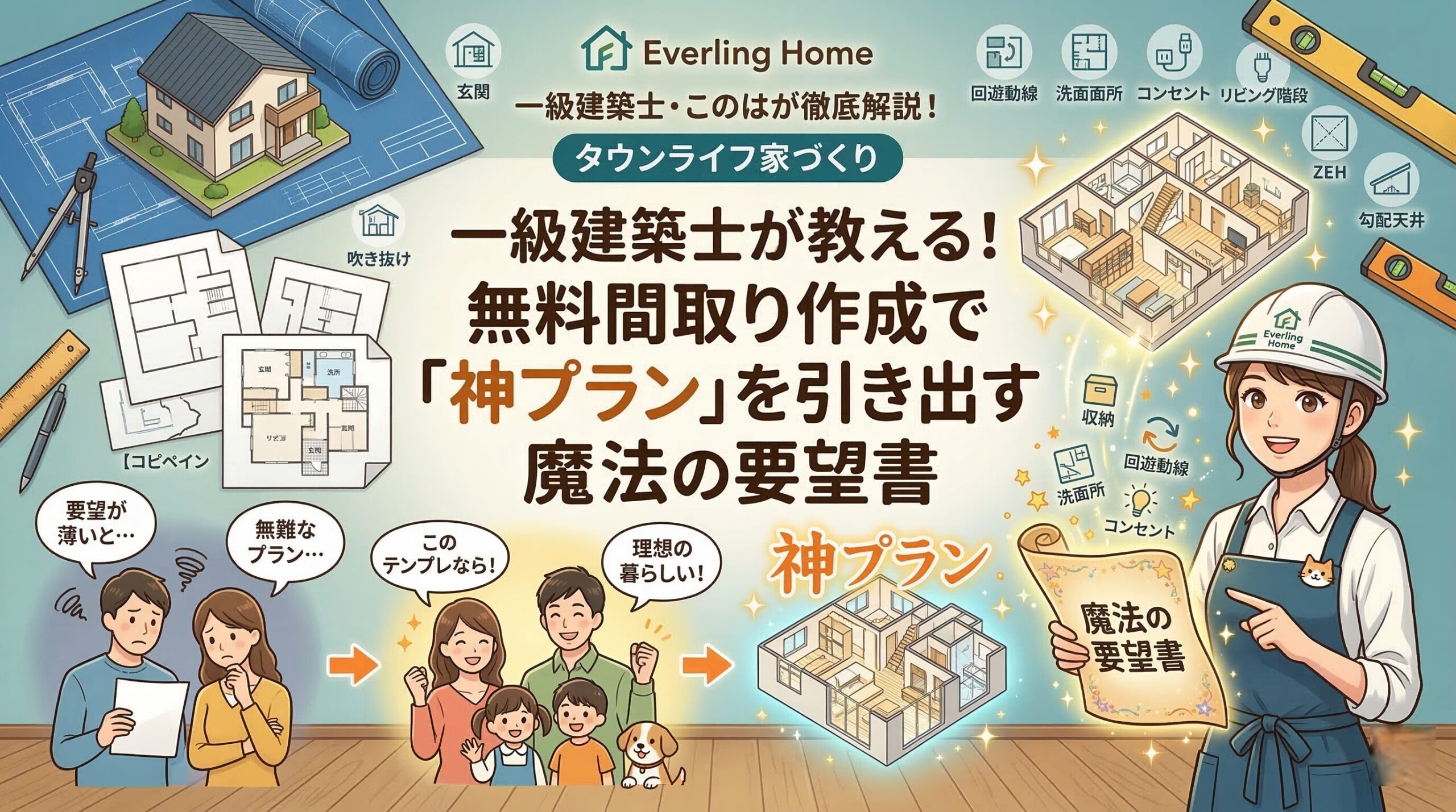 そこでこの記事では、一級建築士の視点から、無料サービスの実態と「賢い使い倒し方」を徹底解説します! さらに、建築士が思わず「おっ、このお客様は本気だな!」と腕を鳴らす【コピペOKの魔法の要望テンプレート】も大公開。